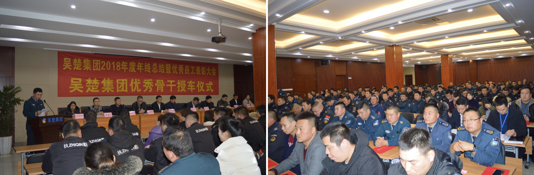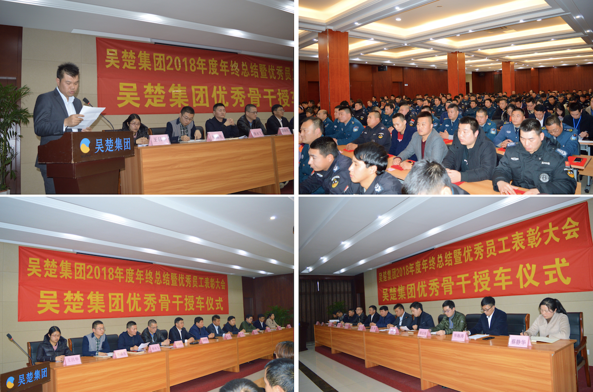 2019年1月19日下午13时,苏州吴楚集团有限公司2018年度年终总结暨员工表彰大会及骨干授车仪式在苏州市勇盾保安服务有限公司保安培训基地隆重举行。集团公司各部门负责人就吴楚集团2018年各项工作情况及2019年工作部署作了总结汇报。各员工代表作了深刻的思想交流和工作分享。集团总经理毕坤明就2018年取得的骄人成绩及2019年集团战略目标作出了重要讲话。