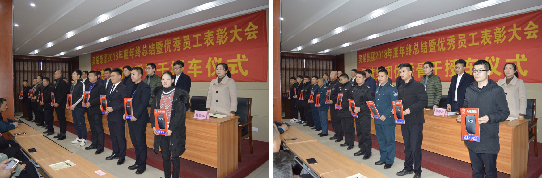 会议下一个议程是骨干授车仪式。近几年来,吴楚集团一直遵循为员工的成长尊严谋划的企业核心价值观。不断提高员工的工资和福利待遇,在购置41台新能源汽车发放给骨干使用的基础上,又新购置了25台燃油汽车,发放给公司骨干使用。公司管理层领导向集团骨干授车,表达了公司对人才的关爱。与此同时,骨干也表示会用自己的实际行动努力工作去回馈公司的厚爱,誓与公司共发展。