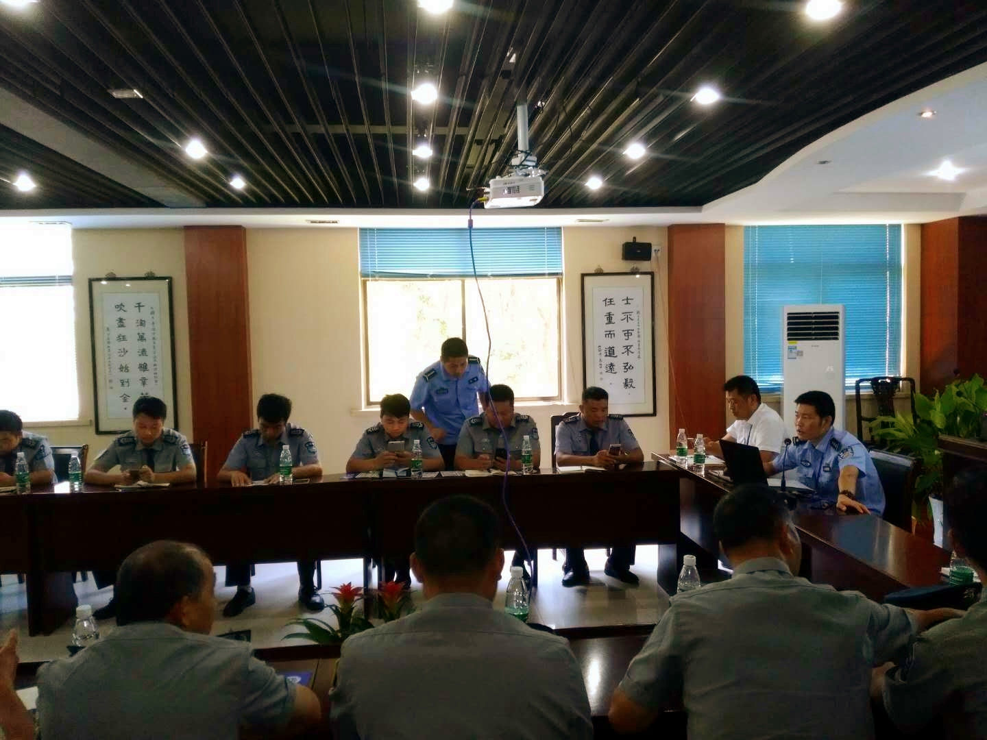 会议主要参会人员:胥口派出所何警官等4名警官、苏州市勇盾保安服务有限公司副总经理丁海波及各个岗点的保安主管等参加。