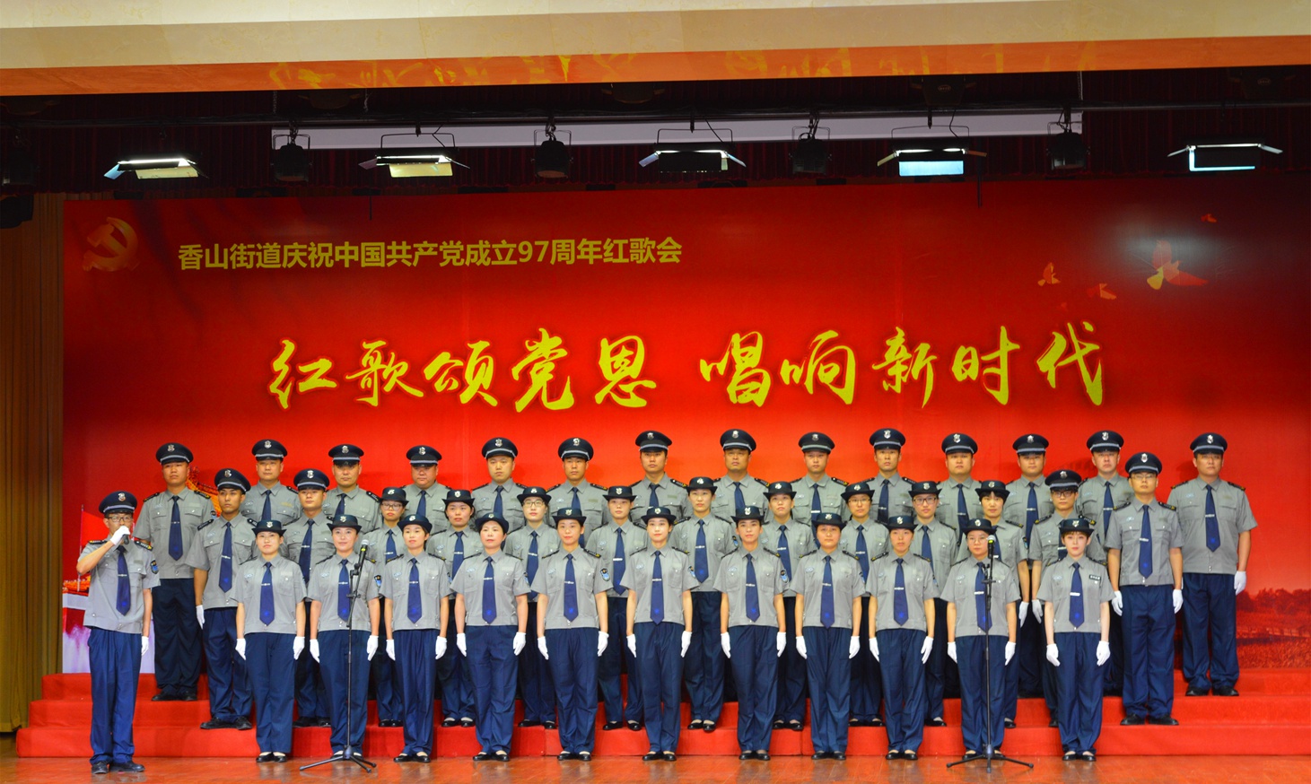 苏州勇盾保安服务有限公司的党员和青年团干们积极响应香山街道号召。在这次由政府组织的“不忘初心,牢记使命”、“红歌颂党恩,唱响新时代”的演出中,我们党团员们,以饱满的热情、昂扬的斗志、整齐的队列,把保安之歌《守护着你》唱的激情澎湃、气势如虹,获得在场大家的一致好评。